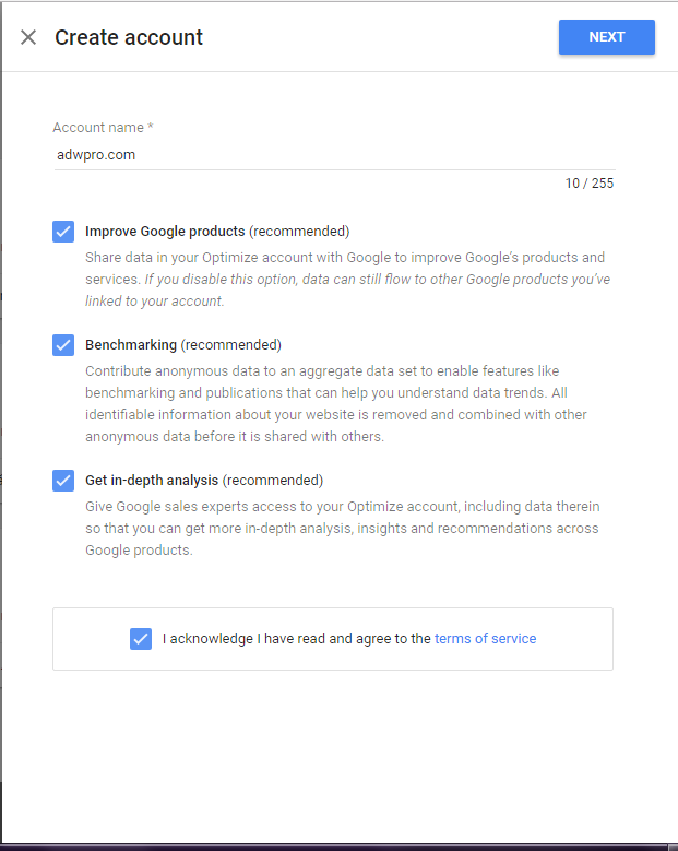 B1: Tạo tài khoản GO và vùng chứa GO nếu chưa có link: https://optimize.google.com/optimize/home/